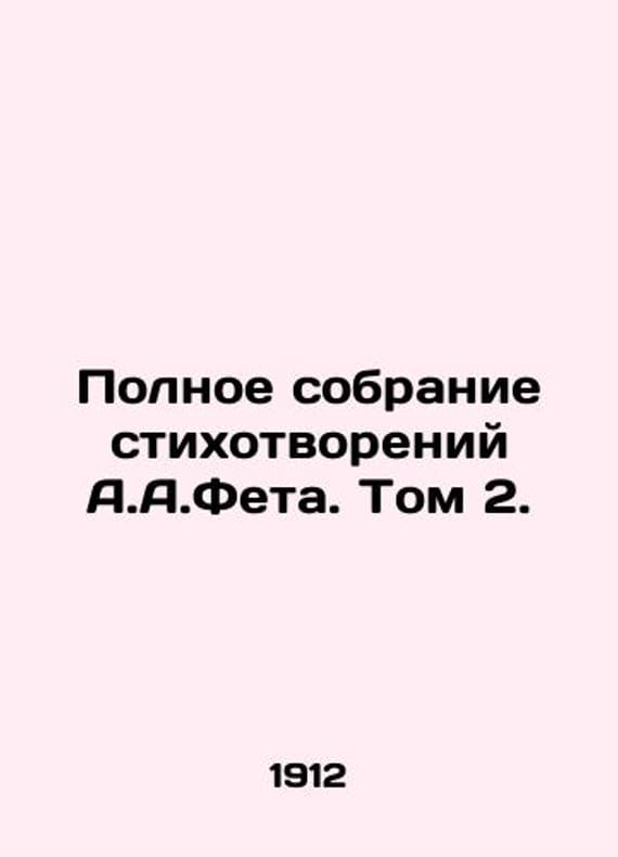 The Complete Collection of Poems by A.A.Feta. Volume 2. In Russian /Polnoe sobranie stikhotvoreniy A.A.Feta. Tom 2. With introductory articles by Nikolai Strakhov and a portrait of A.A.Feta. Supplement to the journal Niva for 1912. We have thousands of titles and often several copies of each title may be available. Please feel free to contact us for a detailed description of the copies available. SKUalbf84503053bcee3cd.