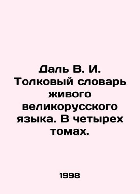 Dal V.I. Interpretative Dictionary of the Living Great Russian Language. In four volumes. In Russian /Dal V. I. Tolkovyy slovar zhivogo velikorusskogo yazyka. V chetyrekh tomakh. Set) Reprinted reproduction of the 1903-1909 edition edited by Prof. I. A. Baudouin de Courtenay. M., Terra 1998. 700 p. We have thousands of titles and often several copies of each title may be available. Please feel free to contact us for a detailed description of the copies available. SKUalbf8601b0b04b1d3e3.