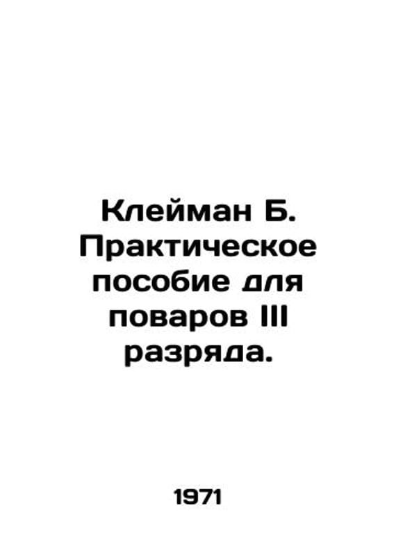 Kleiman B. Practical guide for cooks of the III category. In Russian /Kleyman B. Prakticheskoe posobie dlya povarov III razryada. M Economics 1971. We have thousands of titles and often several copies of each title may be available. Please feel free to contact us for a detailed description of the copies available. SKUalbf899c229935a22e2.