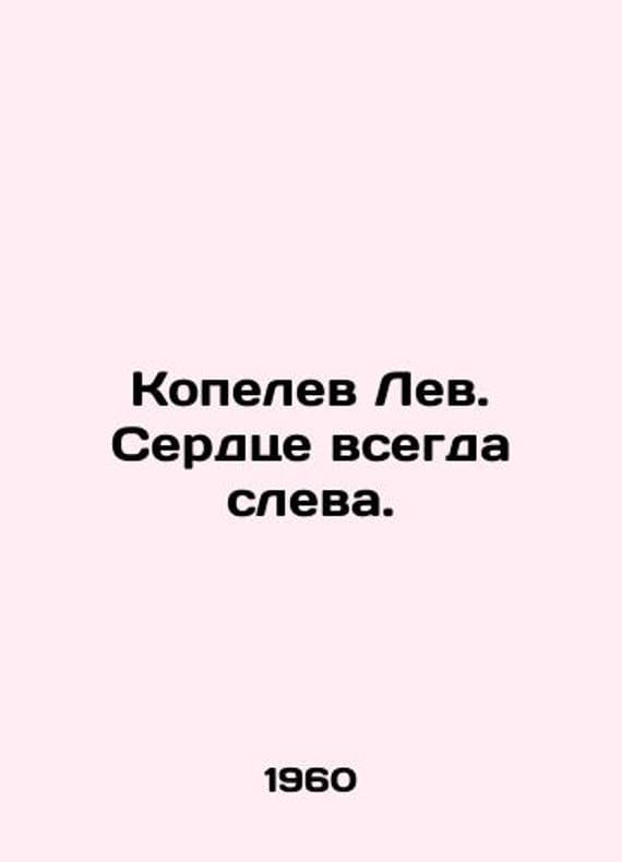 Kopelev the Lion. The heart is always on the left. In Russian /Kopelev Lev. Serdtse vsegda sleva. Articles and notes about contemporary foreign literature. M. Soviet writer, 1960. 520c. We have thousands of titles and often several copies of each title may be available. Please feel free to contact us for a detailed description of the copies available. SKUalbf8c736b736e7fe3b.