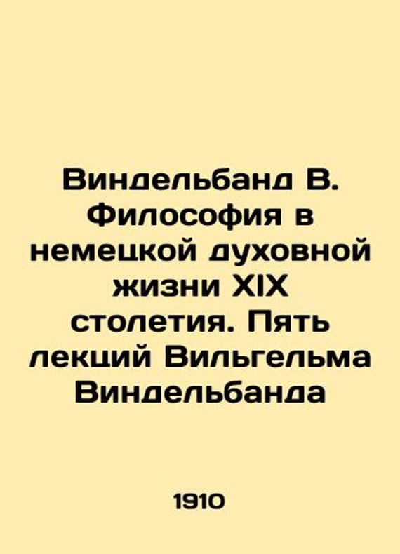 Windelband W. Philosophy in nineteenth-century German Spiritual Life: Five Lectures by Wilhelm Windelband In Russian /Vindelband V. Filosofiya v nemetskoy dukhovnoy zhizni XIX stoletiya. Pyat lektsiy Vilgelma Vindelbanda Authorized Translation by M.M.Rubinstein. Moscow: Zveno. 1910. We have thousands of titles and often several copies of each title may be available. Please feel free to contact us for a detailed description of the copies available. SKUalbf8e5cbfede6d9f16.