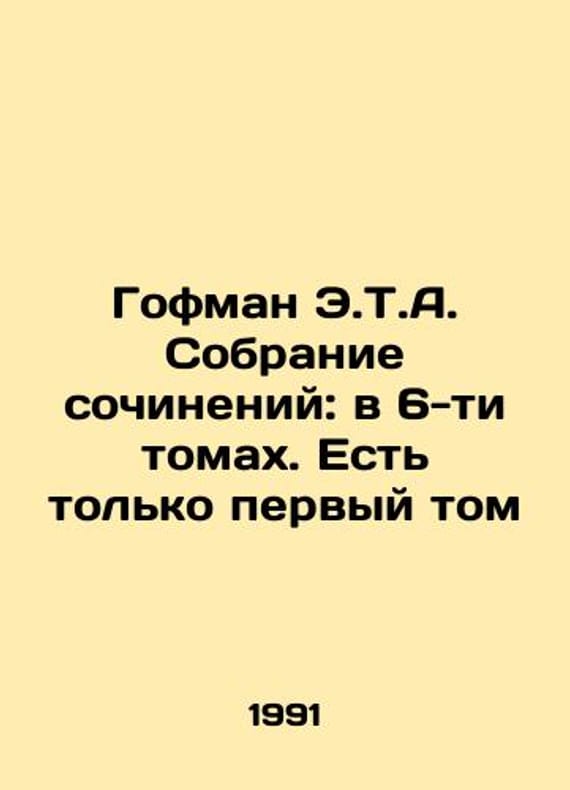 Hoffman E.T.A. A collection of essays: in 6 volumes. There is only the first volume In Russian /Gofman E.T.A. Sobranie sochineniy: v 6-ti tomakh. Est tolko pervyy tom Editorial Board: A. Botnikova et al. Compiled by A. Botnikova and A. Karelsky. We have thousands of titles and often several copies of each title may be available. Please feel free to contact us for a detailed description of the copies available. SKUalbf922e52f749fbd31.
