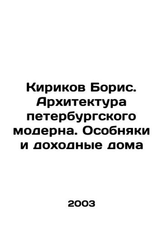 Boris Kirikov. Art Nouveau Architecture in St. Petersburg: Mansions and Income Houses In Russian /Kirikov Boris. Arkhitektura peterburgskogo moderna. Osobnyaki i dokhodnye doma Kirikov Boris. Architecture of St. Petersburg Art Nouveau. Mansions and Income Houses 2003. We have thousands of titles and often several copies of each title may be available. Please feel free to contact us for a detailed description of the copies available. SKUalbf93462357047081d.