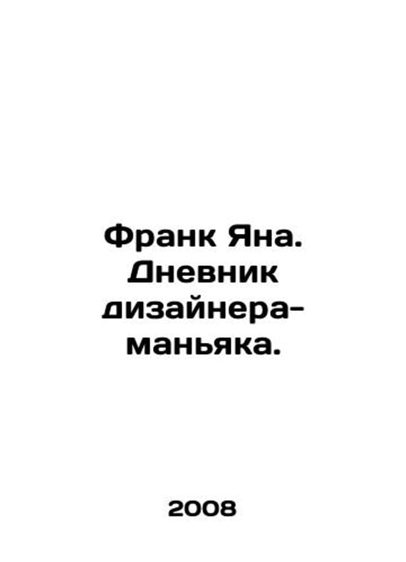 Frank Jana. Diary of a Maniacal Designer. In Russian /Frank Yana. Dnevnik dizaynera-manyaka. 2nd edition, Moscow 2008. 286 p. We have thousands of titles and often several copies of each title may be available. Please feel free to contact us for a detailed description of the copies available. SKUalbf96fb7527c398cc3.