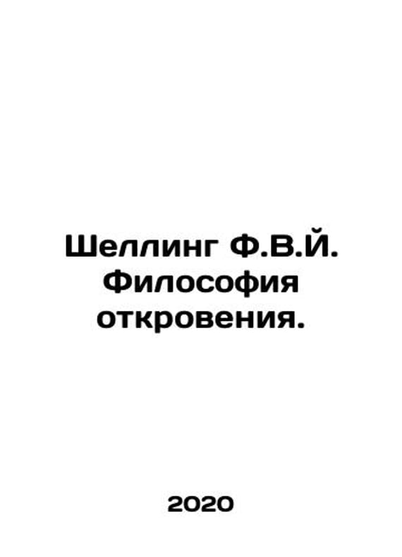 Schelling F.W.J. Philosophy of Revelation. In Russian /Shelling F.V.Y. Filosofiya otkroveniya. S.Pb.Brain 2020. 888 p. We have thousands of titles and often several copies of each title may be available. Please feel free to contact us for a detailed description of the copies available. SKUalbf9885a32e47f9e22.