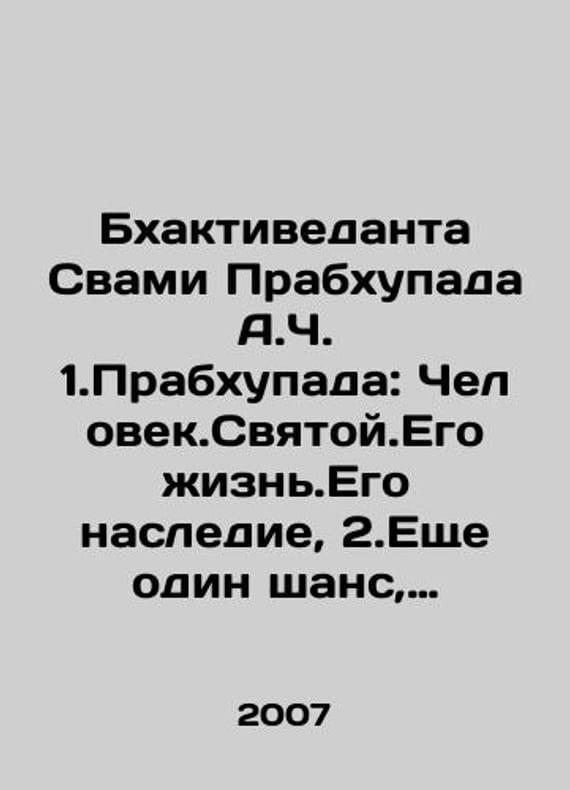 Bhaktivedanta Swami Prabhupada A.C. 1. Prabhupada: Human.Holy. His Life. His Legacy, 2. Another Chance, 3. Yoga Perfection, 4. The Way to Excellence, 5. In Search of Enlightenment, 6. The Science of Self-Consciousness, 7. Life comes from life.7 books In Russian /Bkhaktivedanta Svami Prabkhupada A.Ch. 1.Prabkhupada: Chelovek.Svyatoy.Ego zhizn.Ego nasledie, 2.Eshche odin shans, 3.Sovershenstvo yogi, 4.Put k sovershenstvu, 5.V poiskakh prosvetleniya, 6.Nauka samosoznaniya, 7.Zhizn proiskhodit iz zhizni.7 knigBhaktivedanta Book Trust, 2007-2021.We have thousands of titles and often several copies of each title may be available. Please feel free to contact us for a detailed description of the copies available. SKUalbf9d4c8f3a394a2f8.
