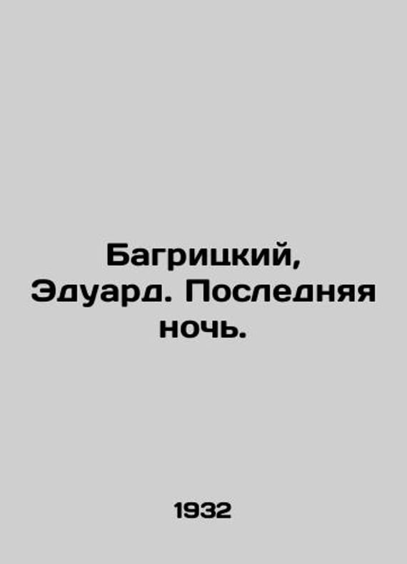 Bagritsky Eduard. Last Night. In Russian (ask us if in doubt)/Bagritskiy Eduard. Poslednyaya noch.M. Federation. 1932. 42 p. In the publishing art cardboard of works by the artist R. Barto.. SKUalbf9dc882ce3021800.