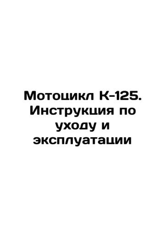 Motorcycle K-125. Instructions for care and operation /Mototsikl K-125. Instruktsiya po ukhodu i ekspluatatsii Motorcycle K-125. Instructions for care and operation We have thousands of titles and often several copies of each title may be available. Please feel free to contact us for a detailed description of the copies available. SKUalbf9e0f9fc03e47459