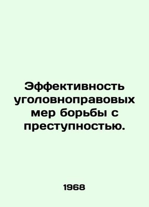 Effectiveness of criminal justice responses to crime. In Russian /Effektivnost ugolovnopravovykh mer borby s prestupnostyu. Under the editorship of Nikiforov B.S. M. Legal Literature, 1968. 256 p. We have thousands of titles and often several copies of each title may be available. Please feel free to contact us for a detailed description of the copies available. SKUalbf9fd3ec8608656a7.