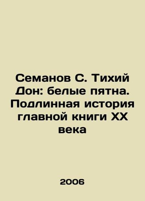 Semanov S. The Quiet Don: White Spots. The True Story of the Main Book of the 20th Century In Russian /Semanov S. Tikhiy Don: belye pyatna. Podlinnaya istoriya glavnoy knigi KhKh veka The Quiet Don M. Yauza series, EXMO 2006. 416 pp. We have thousands of titles and often several copies of each title may be available. Please feel free to contact us for a detailed description of the copies available. SKUalbfa085ed524add080.