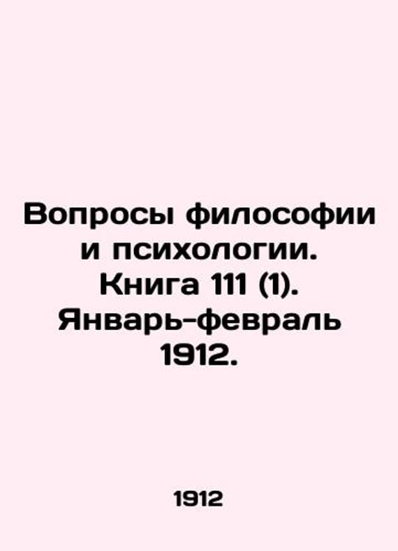Questions of Philosophy and Psychology. Book 111 (1). January-February 1912. In Russian /Voprosy filosofii i psikhologii. Kniga 111 (1). Yanvar-fevral 1912. Questions of Philosophy and Psychology. Book 111 (1). January-February 1912. 1912. We have thousands of titles and often several copies of each title may be available. Please feel free to contact us for a detailed description of the copies available. SKUalbfa11a6a85fedc73f.