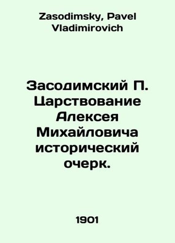 The reign of Alexey Mikhailovich is a historical sketch. In Russian /Zasodimskiy P. Tsarstvovanie Alekseya Mikhaylovicha istoricheskiy ocherk. Moscow Edition of the bookstore of the trading house S. Kurnik and Co. 1901. 55 p. We have thousands of titles and often several copies of each title may be available. Please feel free to contact us for a detailed description of the copies available. SKUalbfadee9dfbc318050.