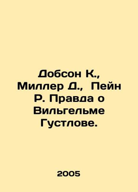Dobson K., Miller D., Payne R. The Truth About Wilhelm Gustlov. In Russian /Dobson K., Miller D., Peyn R. Pravda o Vilgelme Gustlove. St. Petersburg Neva year 2005. We have thousands of titles and often several copies of each title may be available. Please feel free to contact us for a detailed description of the copies available. SKUalbfae7c0c5f0890502.