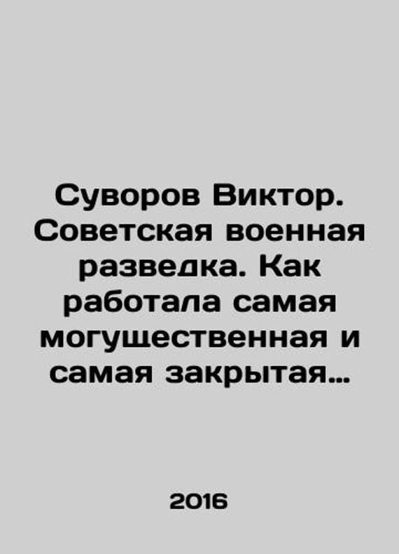 Suvorov Viktor. Soviet Military Intelligence. How the most powerful and most secretive intelligence organization of the twentieth century worked. In Russian /Suvorov Viktor. Sovetskaya voennaya razvedka. Kak rabotala samaya mogushchestvennaya i samaya zakrytaya razvedyvatelnaya organizatsiya KhKh veka. M. Dobraya kbook. 2017. 496s. We have thousands of titles and often several copies of each title may be available. Please feel free to contact us for a detailed description of the copies available. SKUalbad80c8247554d1e4.