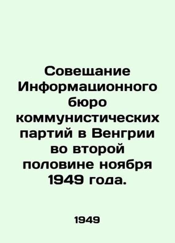 Meeting of the Information Office of the Communist Parties in Hungary in the second half of November 1949. In Russian /Soveshchanie Informatsionnogo byuro kommunisticheskikh partiy v Vengrii vo vtoroy polovine noyabrya 1949 goda. M. Gopolitizdat 1949. 104 p. We have thousands of titles and often several copies of each title may be available. Please feel free to contact us for a detailed description of the copies available. SKUalbfb7289e00ebd760c.