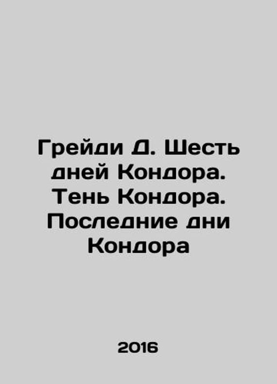 Grady D. The Six Days of Condor. The Shadow of Condor. The Last Days of Condor In Russian /Greydi D. Shest dney Kondora. Ten Kondora. Poslednie dni Kondora ( 754 gr.Classics of Detective M. ACT 2016.We have thousands of titles and often several copies of each title may be available. Please feel free to contact us for a detailed description of the copies available. SKUalbfb78341fbaac28bd.