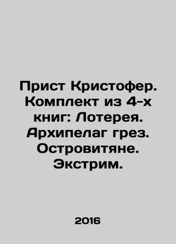 Priest Christopher. Set of 4 books: Lottery. Archipelago of Dreams. Islanders. Extreme. In Russian /Prist Kristofer. Komplekt iz 4-kh knig: Lotereya. Arkhipelag grez. Ostrovityane. Ekstrim. The series: Big Fiction. M: Fanzon, 2016-2018 416 and 416 and 448 and 480 pp. Christopher Priest is a popular British writer, fiction writer, author of famous novels Prestige, Glamour, Lottery, and many others, who began his literary career as one of the members of the new wave. We have thousands of titles and often several copies of each title may be available. Please feel free to contact us for a detailed description of the copies available. SKUalbfb89298b5f9316bc.