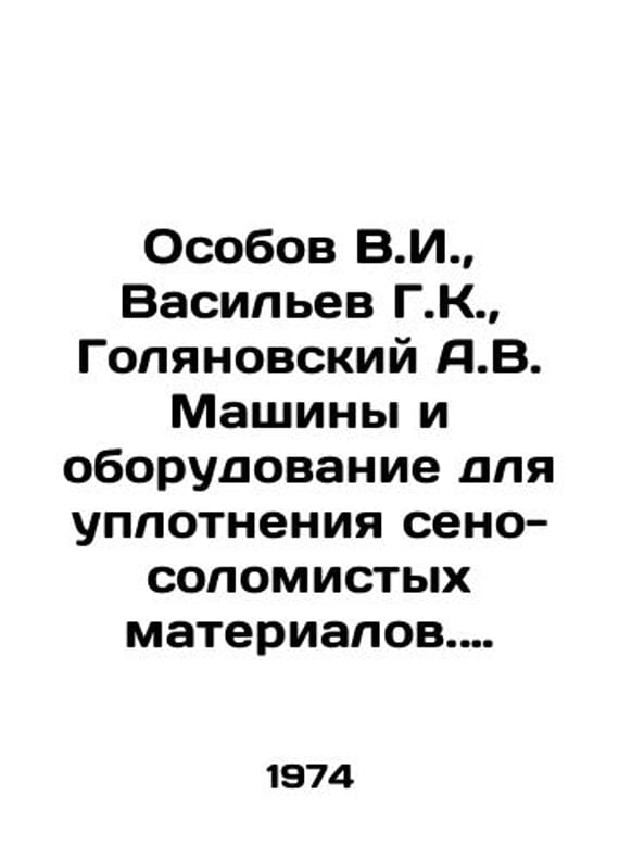 Special V.I., Vasiliev G.K., Golyanovsky A.V. Machines and equipment for sealing hay-straw materials. (Fundamentals of theory and calculation of working bodies). In Russian /Osobov V.I., Vasilev G.K., Golyanovskiy A.V. Mashiny i oborudovanie dlya uplotneniya seno-solomistykh materialov. (Osnovy teorii i rascheta rabochikh organov). M. Machinebuilding 1974. We have thousands of titles and often several copies of each title may be available. Please feel free to contact us for a detailed description of the copies available. SKUalbfb9934a64058e99e.
