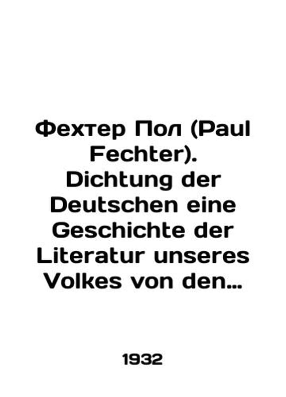 Paul Fechter. Dichtung der Deutschen eine Geschichte der Literatur unseres Volkes von den Anfangen bis zur Gegenwart. In Russian /Fekhter Pol (Paul Fechter). Dichtung der Deutschen eine Geschichte der Literatur unseres Volkes von den Anfangen bis zur Gegenwart. Berlin Deutsche Buch-Gemeinschaft, G.m.b.H. 1932. 816 p. We have thousands of titles and often several copies of each title may be available. Please feel free to contact us for a detailed description of the copies available. SKUalbfbf2c340ff1ffe14.