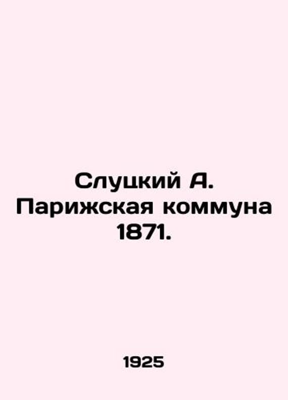 Slutsky A. Paris Commune 1871. In Russian /Slutskiy A. Parizhskaya kommuna 1871. M. Edition of the communist Y.Sverdlov University, 1925. We have thousands of titles and often several copies of each title may be available. Please feel free to contact us for a detailed description of the copies available. SKUalbfc5316a64da45a31.