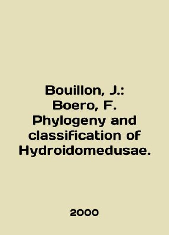 Bouillon, J.: Boero, F. Phylogeny and classification of Hydroidomedusae. In English /Bouillon, J.: Boero, F. Phylogeny and classification of Hydroidomedusae. Philogens and Classification of Medusa. 2000. 300s. We have thousands of titles and often several copies of each title may be available. Please feel free to contact us for a detailed description of the copies available. SKUalbfc5e134edcab1bf3.