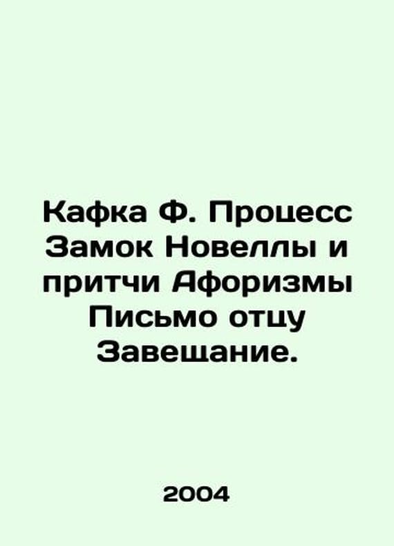 Kafka F. The Process of the Castle of Novelties and the Proverbs of Aphorism Letter to the Father Testament. In Russian /Kafka F. Protsess Zamok Novelly i pritchi Aforizmy Pismo ottsu Zaveshchanie. The Golden Fund of World Classics M Ast NF Pushkin Library 2004. We have thousands of titles and often several copies of each title may be available. Please feel free to contact us for a detailed description of the copies available. SKUalbfc8711fa23bad033.