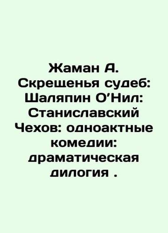 Jaman A. Crossings of Fate: Shalyapin ONeill: Stanislavsky Chekhov: one-act comedies: dramatic dyology. In Russian /Zhaman A. Skreshchenya sudeb: Shalyapin ONil: Stanislavskiy Chekhov: odnoaktnye komedii: dramaticheskaya dilogiya.Moscow Rudomino Book Center 2024. 128s.We have thousands of titles and often several copies of each title may be available. Please feel free to contact us for a detailed description of the copies available. SKUalbfc994f82ed1f2590.