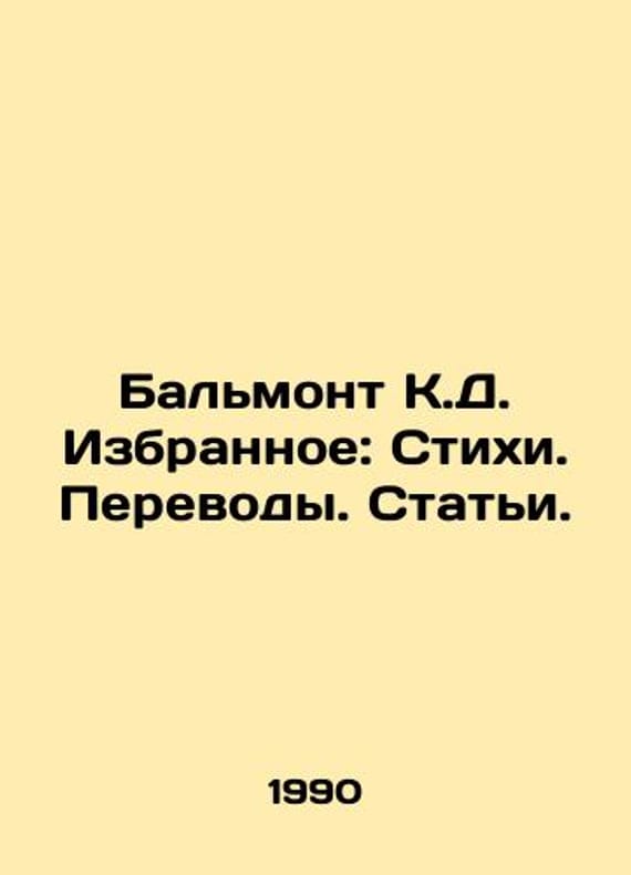 Balmont C.D. Favorites: Poems. Translations. Articles. In Russian /Balmont K.D. Izbrannoe: Stikhi. Perevody. Stati. M. Pravda 1990. 608 p. We have thousands of titles and often several copies of each title may be available. Please feel free to contact us for a detailed description of the copies available. SKUalbfd1b19fee6a693c0.