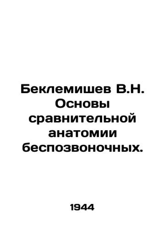 Beklemishev V.N. Basics of comparative anatomy of invertebrates. In Russian /Beklemishev V.N. Osnovy sravnitelnoy anatomii bespozvonochnykh. Editor Mestergazi M. M. Soviet Science 1944 490s. We have thousands of titles and often several copies of each title may be available. Please feel free to contact us for a detailed description of the copies available. SKUalbfd21edb07cb2ef83.