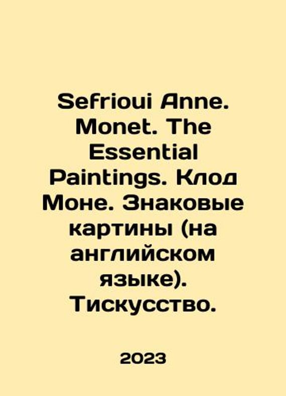 Sefrioui Anne. Monet. The Essential Paintings. Claude Monet. Famous paintings (in English). Art. In Russian /Sefrioui Anne. Monet. The Essential Paintings. Klod Mone. Znakovye kartiny (na angliyskom yazyke). Tiskusstvo. Series: BERLIN PRESTEL 2023 Harmony Books 240s. We have thousands of titles and often several copies of each title may be available. Please feel free to contact us for a detailed description of the copies available. SKUalbfd347af8d8c1760a.