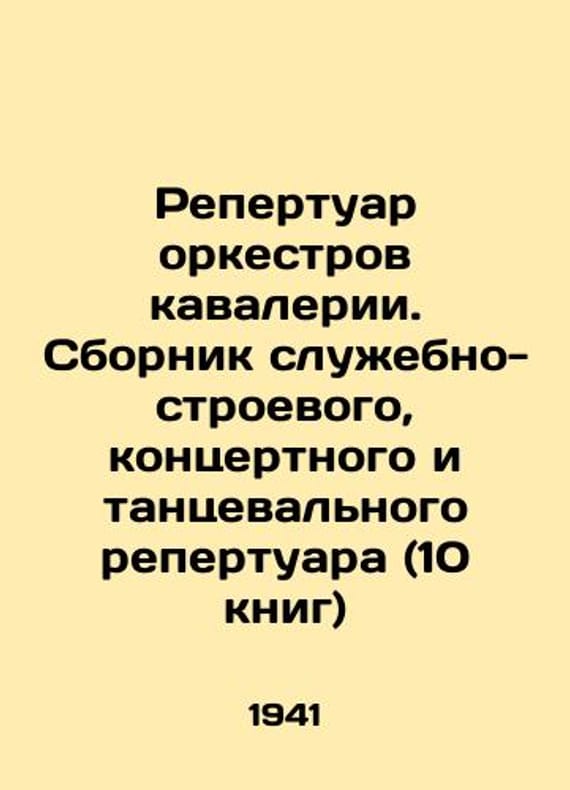 Cavalry orchestras repertoire. Compilation of service concert and dance repertoire (10 books) In Russian (ask us if in doubt)/Repertuar orkestrov kavalerii. Sbornik sluzhebno-stroevogo kontsertnogo i tantsevalnogo repertuara (10 knig). Short description: In Russian (ask us if in doubt).Compilation of military service concert and dance repertoire for orchestras of the Red Army cavalry M. Voenizdat 1941 63 and 67 and 67 and 64 and 63 and 65 and 65 and 65 and 65 and 65 pages We have thousands of titles and often several copies of each title may be available. Please feel free to contact us for a detailed description of the copies available. SKUalbfd5ced4576e572bd