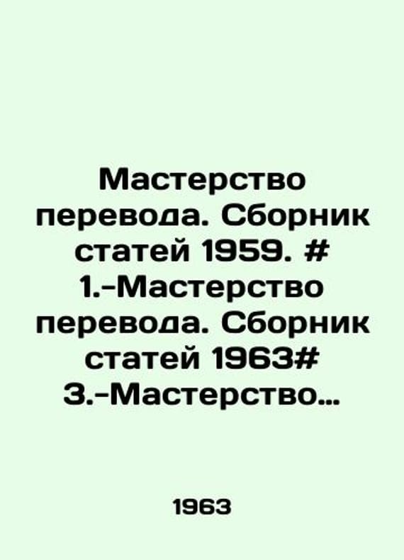 Mastery of translation. Collection of articles 1959. # 1.-Mastery of translation. Collection of articles 1963 # 3.-Mastery of translation 1969. Collection sixth. In Russian /Masterstvo perevoda. Sbornik statey 1959. # 1.-Masterstvo perevoda. Sbornik statey 1963# 3.-Masterstvo perevoda 1969. Sbornik shestoy. M. Soviet writer 1959, 1963, 1970. 509, 2 p. We have thousands of titles and often several copies of each title may be available. Please feel free to contact us for a detailed description of the copies available. SKUalbfd9927c34deb7593.