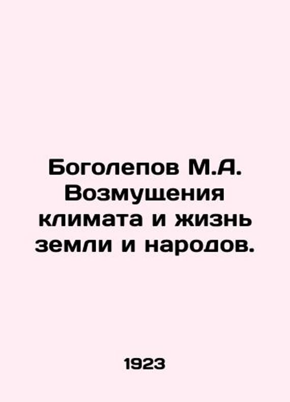 Bogolepov M.A. Climate revolts and the life of the earth and peoples. In Russian /Bogolepov M.A. Vozmushcheniya klimata i zhizn zemli i narodov. The Popular Science Library, edited by D.N.Anuchin Berlin, published by Z.I.Grzhebin in 1923. We have thousands of titles and often several copies of each title may be available. Please feel free to contact us for a detailed description of the copies available. SKUalbfdad0cbf7aadd0ff.
