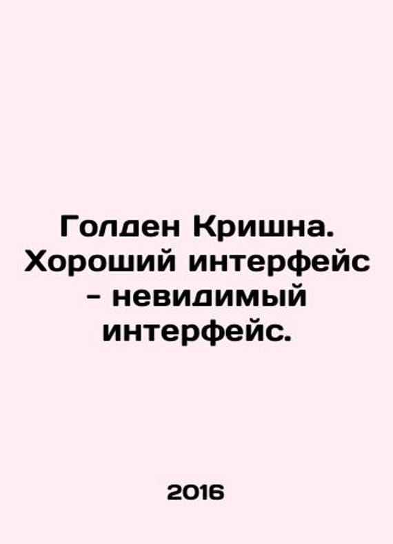 Golden Krishna. A good interface is an invisible interface. In Russian /Golden Krishna. Khoroshiy interfeys - nevidimyy interfeys. St. Petersburg Peter 2016. We have thousands of titles and often several copies of each title may be available. Please feel free to contact us for a detailed description of the copies available. SKUalbfdf1d40a5f8308a1.