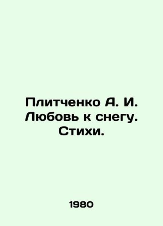Plitchenko A. I. Love for snow. Poems. In Russian /Plitchenko A. I. Lyubov k snegu. Stikhi. Artist Elena Yelskaya. Moscow. Soviet writer. 1980. 104 p. We have thousands of titles and often several copies of each title may be available. Please feel free to contact us for a detailed description of the copies available. SKUalbfe1e6e1bf1eaebb1.