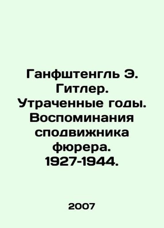 Hanfstengl E. Hitler: The Lost Years: A Memoir of a Fuhrer Comrade. 1927-1944. In Russian /Ganfshtengl E. Gitler. Utrachennye gody. Vospominaniya spodvizhnika fyurera. 1927 1944. Behind the Front Line. Memoirs by M. Centropolygraph 2007. 336 pp. We have thousands of titles and often several copies of each title may be available. Please feel free to contact us for a detailed description of the copies available. SKUalbfe219a8a2724028b.
