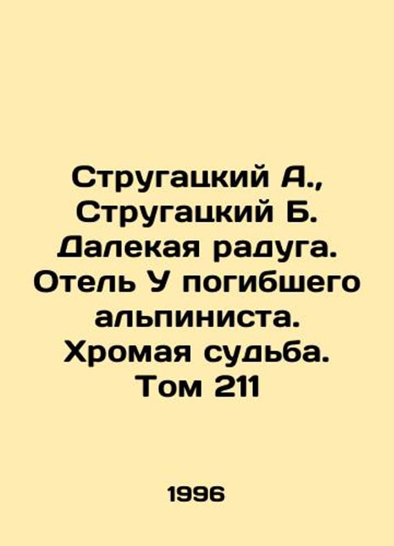 Strugatsky A., Strugatsky B. Far Rainbow. Hotel at the Fallen Climber. Lame Fate. Volume 211 In Russian /Strugatskiy A., Strugatskiy B. Dalekaya raduga. Otel U pogibshego alpinista. Khromaya sudba. Tom 211 Series: Library of Fiction. Moscow Friendship of Peoples, 1996. 608 p. We have thousands of titles and often several copies of each title may be available. Please feel free to contact us for a detailed description of the copies available. SKUalbfe4838b9293d0a9c.