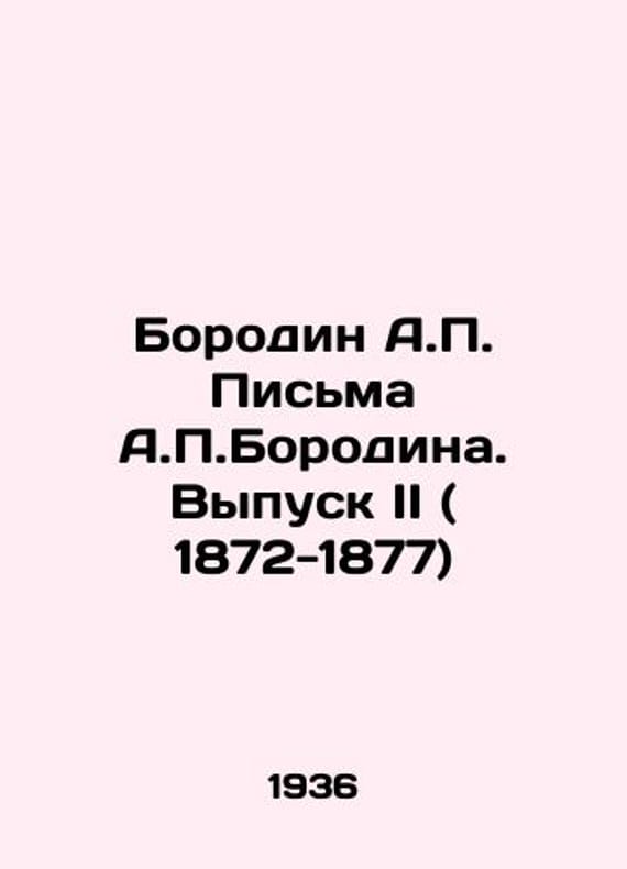 Borodin A.P. Letters by A.P. Borodina. Issue II (1872-1877) In Russian /Borodin A.P. Pisma A.P.Borodina. Vypusk II ( 1872-1877) Introductory article by G. Khubov. Editorial, comments and notes by S. Dianin Moscow State music publishing house 1936 Alexander Porfiryevich BORODIN (1833-87), Russian composer and chemist. Member of a powerful group. Prince Igor (completed by N. A. Rimsky-Korsakov and A. K. Glazunov, 1890) is a model of a national heroic epic in music. One of the creators of the Russian classical symphony (2nd, Bogatyrskaya, 1876, who discovered the heroic-epic direction in Russian symphonism, symphonic painting In Central Asia, 1980), a Russian classical string quartet. We have thousands of titles and often several copies of each title may be available. Please feel free to contact us for a detailed description of the copies available. SKUalbfe5c852d096c5ef5.