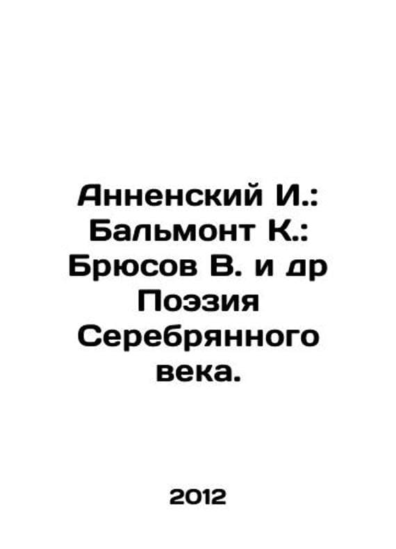 Annensky I.: Balmont K.: Bryusov V. et al. Silver Age Poetry. In Russian /Annenskiy I.: Balmont K.: Bryusov V. i dr Poeziya Serebryannogo veka. Series: Classics in Illustrations by M. Olma Media Group 2012 (ISBN: 978-5-373-04125-6 9785373041256) The Silver Age is a unique poetic era, a cultural phenomenon that emerged in Russia at the juncture of the 19th-20th centuries, a time of a new blossoming of Russian poetry. We have thousands of titles and often several copies of each title may be available. Please feel free to contact us for a detailed description of the copies available. SKUalbfe82500e5866c4d7.