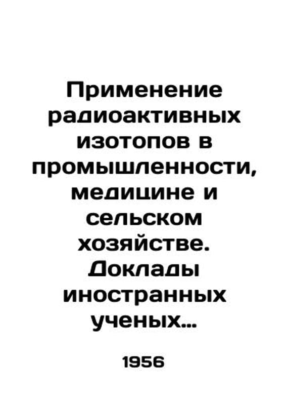 The Application of Radioactive Isotopes in Industry, Medicine, and Agriculture. Reports by Foreign Scientists at the International Conference on the Peaceful Uses of Atomic Energy. Geneva 1955. In Russian /Primenenie radioaktivnykh izotopov v promyshlennosti, meditsine i selskom khozyaystve. Doklady inostrannykh uchenykh na mezhdunarodnoy konferentsii po mirnomu ispolzovaniyu atomnoy energii. Zheneva 1955.M. Academy of Sciences of the USSR 1956.We have thousands of titles and often several copies of each title may be available. Please feel free to contact us for a detailed description of the copies available. SKUalbfecc29d00ee0acba.
