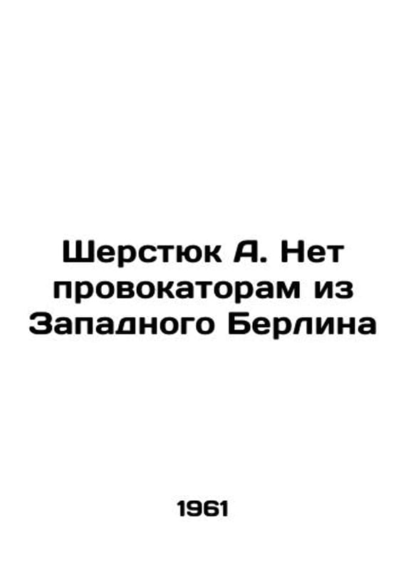 Sherstyuk A. No to the provocateurs from West Berlin In Russian /Sherstyuk A. Net provokatoram iz Zapadnogo Berlina Notes from the Soviet magazine. M Gopolizdat 1961. We have thousands of titles and often several copies of each title may be available. Please feel free to contact us for a detailed description of the copies available. SKUalbfee0f5858e00da15.