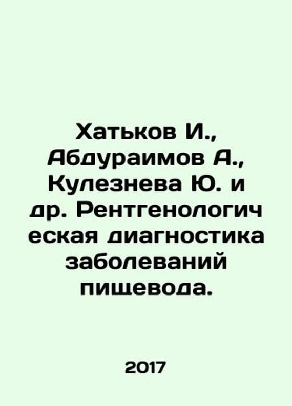 I. Khatkov, A. Abduraimov, Yu. Kulezneva et al. Radiological diagnosis of diseases of the esophagus. In Russian /Khatkov I., Abduraimov A., Kulezneva Yu. i dr. Rentgenologicheskaya diagnostika zabolevaniy pishchevoda. M SIMK 2017 152 pp. We have thousands of titles and often several copies of each title may be available. Please feel free to contact us for a detailed description of the copies available. SKUalbfeec2b427961eace.