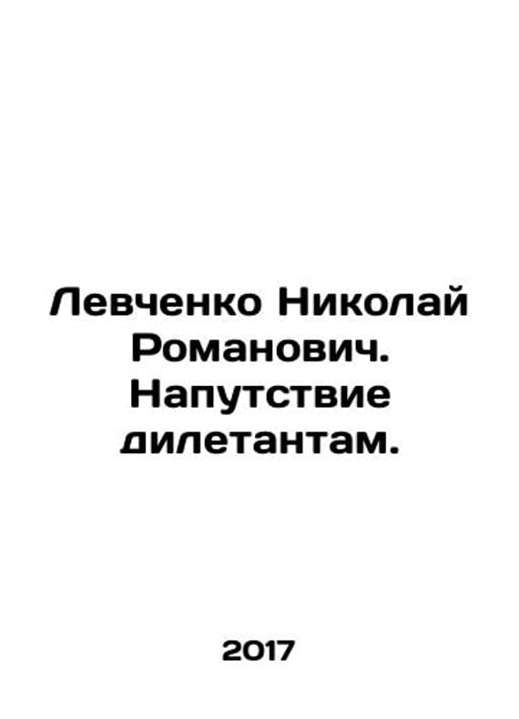 Levchenko Nikolai Romanovich. A farewell to dilettantes. In Russian /Levchenko Nikolay Romanovich. Naputstvie diletantam. Essay. Stories. Blagoveshchensk. IC RIO. 2017. 192 p. We have thousands of titles and often several copies of each title may be available. Please feel free to contact us for a detailed description of the copies available. SKUalbfefcd1df80e66c98.