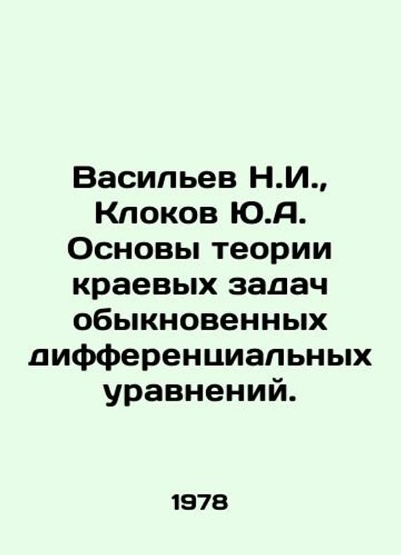 Vasiliev N.I., Clokov Yu.A. Fundamentals of the theory of boundary problems of ordinary differential equations. In Russian /Vasilev N.I., Klokov Yu.A. Osnovy teorii kraevykh zadach obyknovennykh differentsialnykh uravneniy. Riga Zinatne 1978. 190 p. We have thousands of titles and often several copies of each title may be available. Please feel free to contact us for a detailed description of the copies available. SKUalbff03a2423f21f2e8.