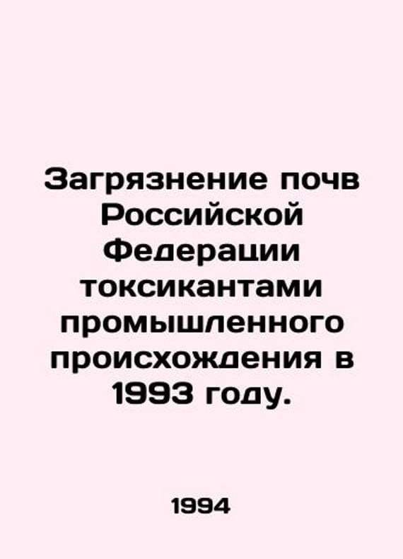 Pollution of soils in the Russian Federation by industrial toxicants in 1993. In Russian /Zagryaznenie pochv Rossiyskoy Federatsii toksikantami promyshlennogo proiskhozhdeniya v 1993 godu. Yearbook. Obninsk. NGO Typhoon. Institute of Experimental Meteorology. 1994. 244s. We have thousands of titles and often several copies of each title may be available. Please feel free to contact us for a detailed description of the copies available. SKUalbff0e665ef2efd2ca.