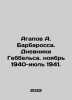 Agapov A. Barbarossa. Goebbelss Diaries. November 1940-July 1941. In Russian /Agapov A. Barbarossa. Dnevniki Gebbelsa. noyabr 1940-iyul 1941. Translated from it, introductory article, commentary, by A.B. Agapov. M. Dashkov and 679 pp. We have thousands of titles and often several copies of each title may be available. Please feel free to contact us for a detailed description of the copies available. SKUalbff16edfc99b09d6d.