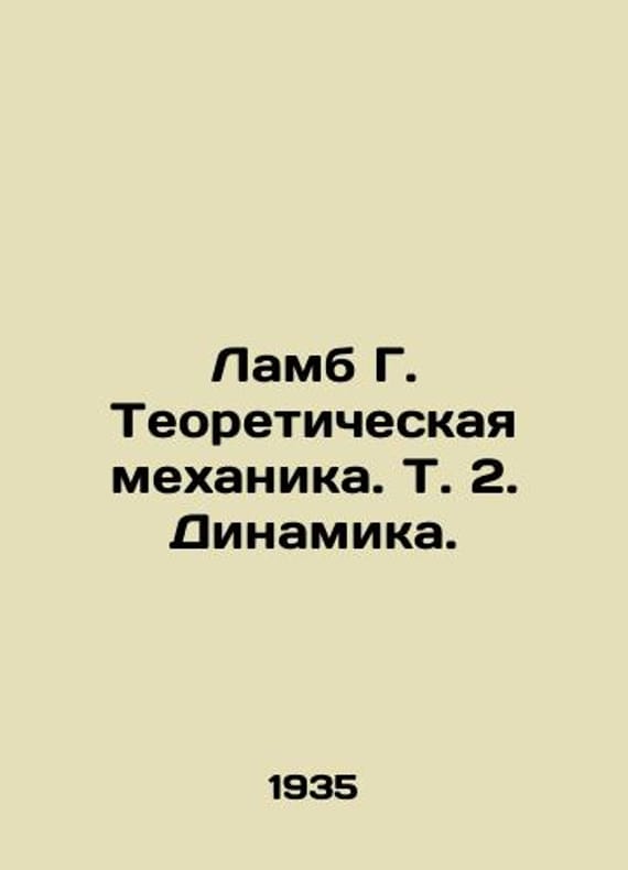 Lamb G. Theoretical Mechanics. Vol. 2. Dynamics. In Russian /Lamb G. Teoreticheskaya mekhanika. T. 2. Dinamika. Translated from English by M.-L. ONTI. 1935. We have thousands of titles and often several copies of each title may be available. Please feel free to contact us for a detailed description of the copies available. SKUalbff558ccd2b16e6f2.