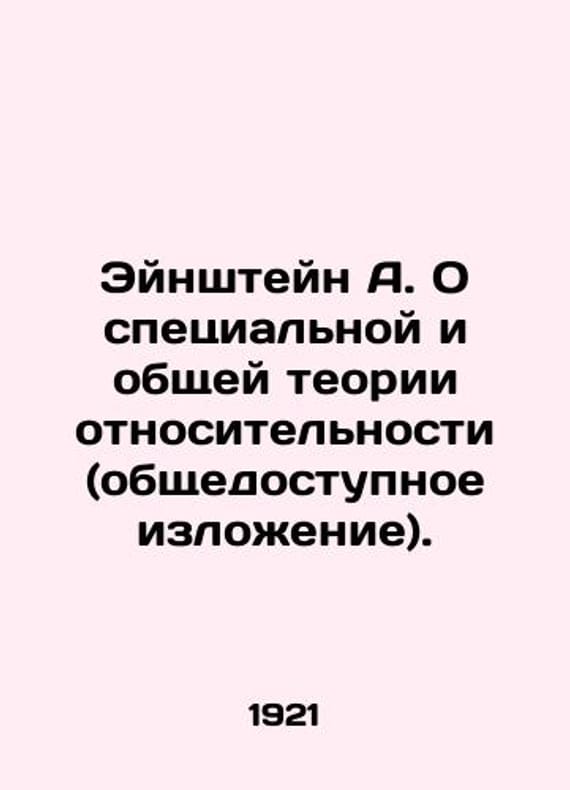 Einstein A. On the Special and General Theory of Relativity (Public Explanation). In Russian /Eynshteyn A. O spetsialnoy i obshchey teorii otnositelnosti (obshchedostupnoe izlozhenie). Scientific book publishing house 1921. 112 p. We have thousands of titles and often several copies of each title may be available. Please feel free to contact us for a detailed description of the copies available. SKUalbff6c1c7ddfa2bd8b.