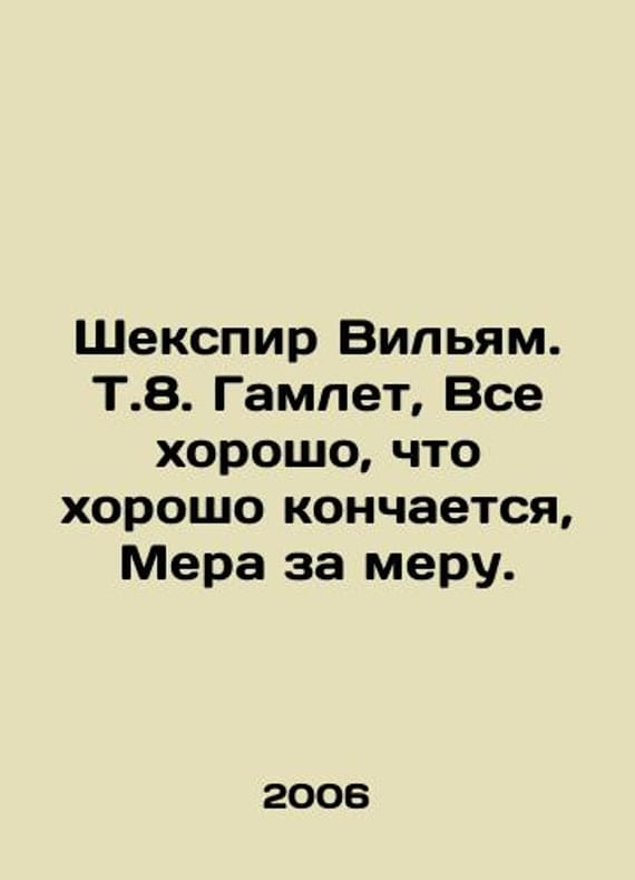 Shakespeare William. That is Hamlet, All is well that ends well, Measure for Measure. In Russian /Shekspir Vilyam. T.8. Gamlet, Vse khorosho, chto khorosho konchaetsya, Mera za meru. Translated from English, comment by B. Akimov, A. Smirnov. Illustrations by D. Gilbert and G. Browne. M. The World of Books. 2006. We have thousands of titles and often several copies of each title may be available. Please feel free to contact us for a detailed description of the copies available. SKUalbff9060cbbc208836.