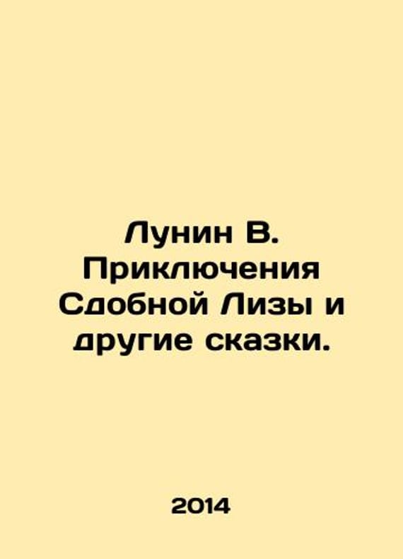 Lunin W. The Adventures of Lisa and Other Tales. In Russian /Lunin V. Priklyucheniya Sdobnoy Lizy i drugie skazki. St. Petersburg. Speech 2014. 176 p. We have thousands of titles and often several copies of each title may be available. Please feel free to contact us for a detailed description of the copies available. SKUalbffccf7b8b61c3f07.